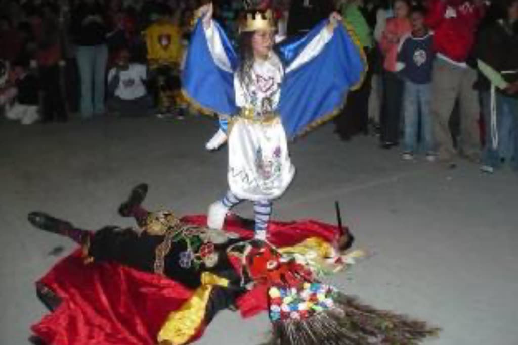 Los danzantes son indígenas, el diablo negro se ha trastocado en figura de español, y la música es negroide; van diciendo coplas, la raíz es castellana y la construcción indígena, es una muestra del proceso de sincretismo. El ángel viste como español, pero con rostro indígena, ¿será este fenómeno producto de la resistencia cultural que gestan las etnias prehispánicas?